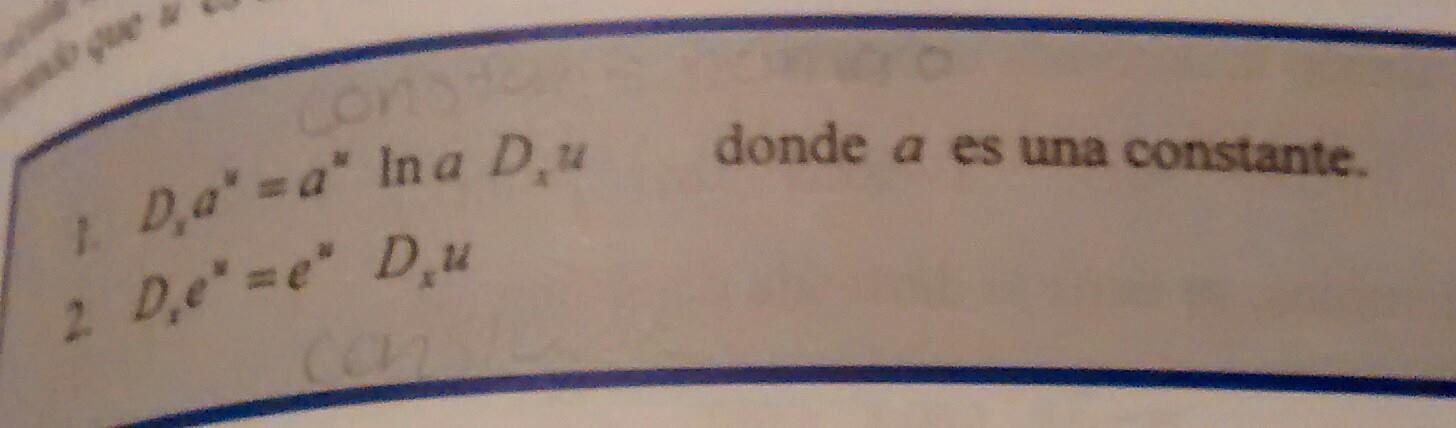 Derivada de las funciones exponenciales:Para calcular la derivada de una función exponencial se aplican los siguientes teoremas.Considerando que U es una función continua de x, esto es, u= f(x)