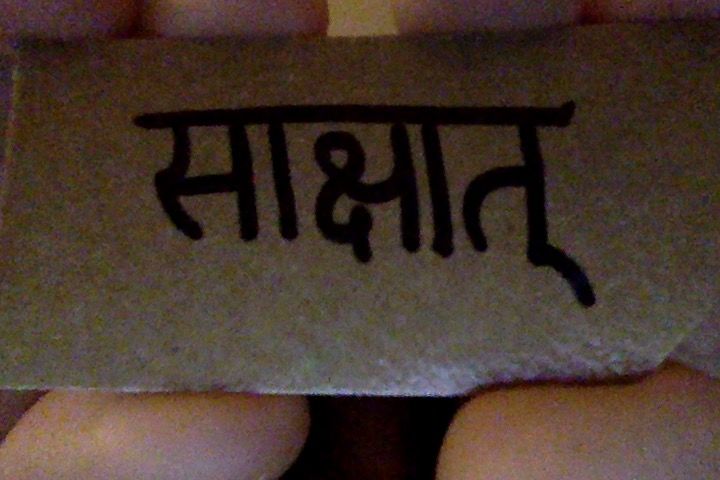 indecl. original ablativo de sa-akṣa ("olho") "obviamente", "pessoalmente"