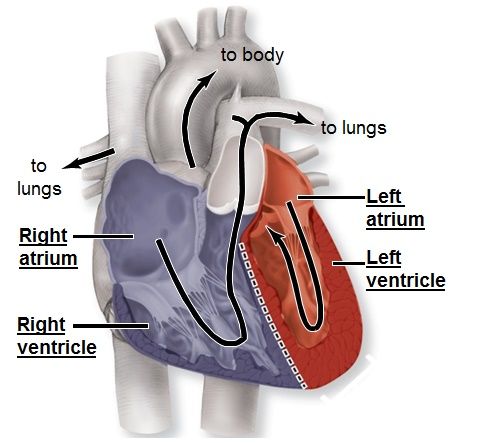 The heart is divided into two chambers. The left and right atria, and the left and right ventricles.