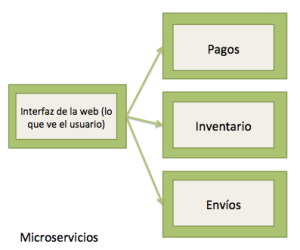 Además, para escalar la aplicación (por ejemplo dar servicio a muchos usuarios) tendré que ir ejecutando copias de mi aplicación bajo balanceadores de carga, que vayan redireccionando a los usuarios hacia un sitio u otro, en función de si el sistema está muy saturado. En este caso, tendré que replicar toda la aplicación, aunque solo sea el módulo de pagos el que concentre la sobrecarga.