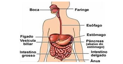 O sistema digestivo humano se estende da cabeça até a pélvis.