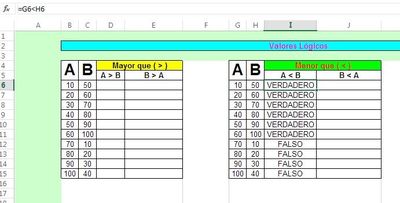 De la imagen de los valores lógicos cual es la función que debo implementar para que me de el resultado tanto VERDADERO COMO FALSO DEPENDIENDO LO QUE SE ME PIDE: