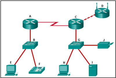 Consulte la ilustración. ¿Qué conjunto de dispositivos contiene únicamente dispositivos intermediarios?