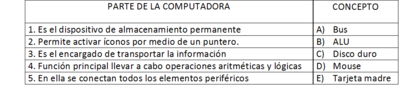 Relaciona la columna PARTE DE LA COMPUTADORA con la columna CONCEPTO