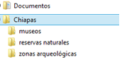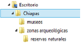 Se está programando un viaje de estudios a Chiapas y vas a tomar fotografías de zonas arqueológicas, reservas naturales y museos, la maestra te pide que las guardes en diferentes carpetas, cuyo nombre será alusivo al tipo de foto y que a su vez estarán contenidas en otra carpeta ubicada en el escritorio de la computadora.