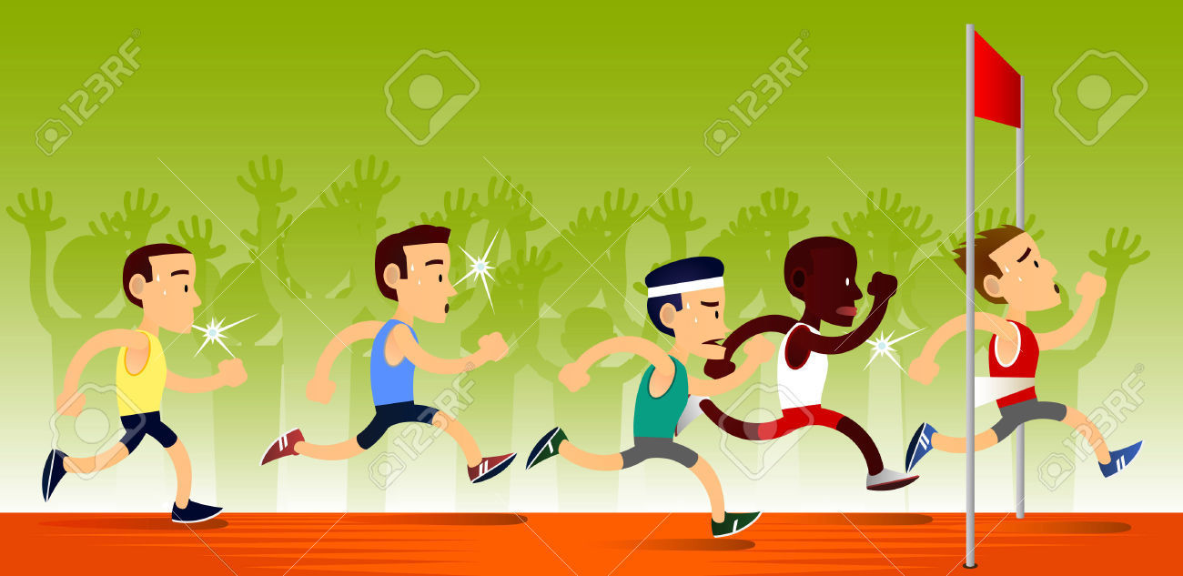 34229856 Corredores De Dibujos Animados En La L Nea De Meta Foto De Archivo (image/jpeg)