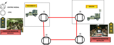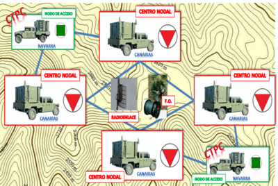 La RED RADIO DE COMBATE (RRC/CNR) tiene por finalidad completar el sistema desplegable de telecomunicaciones del Ejército, proporcionando enlace a usuarios no integrados en la red táctica principal. En su configuración más completa consta de: