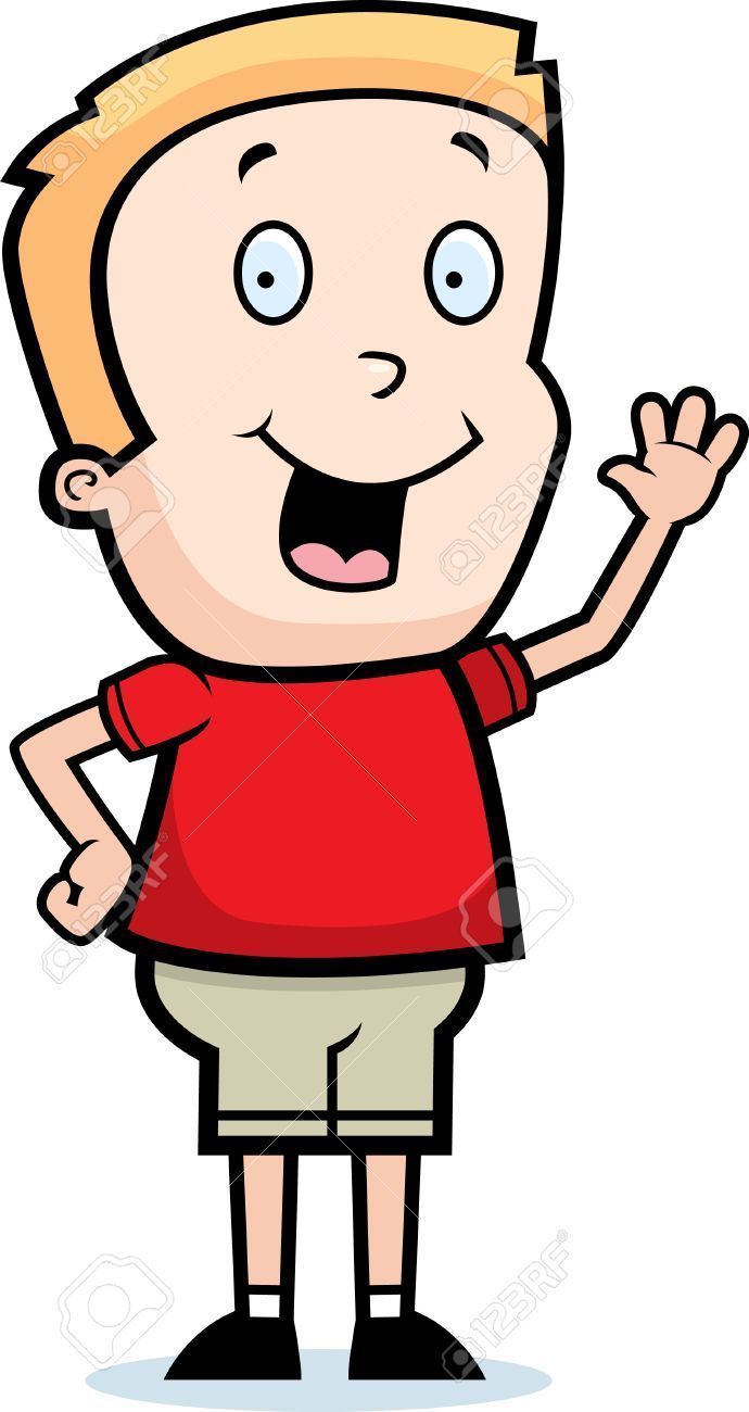 26468626 Un Niño De Dibujos Animados Feliz Saludando Y Sonriendo (image/jpeg)