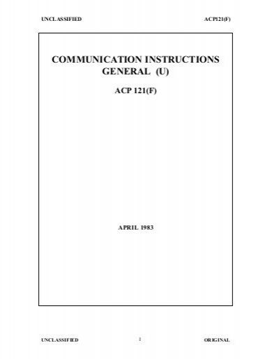 El ACP-121 desarrolla las Instrucciones Generales de Transmisiones y se promulga para ofrecer información, guía y procedimientos de uso de las
