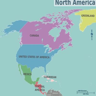 ¿En qué tipo de región está dividido el mapa de América del Norte?