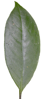 Ápice agudo, Limbo lanceolado, Margen entero, Consistencia coriácea, Textura glabra, Base aguda y Venación hypodróma