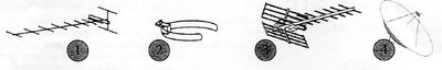 1) ANTENA YAGUI (RECIBIR LA SEÑAL DE TV TERRESTRE). 2) ANTENA CIRCULAR (RECIBIR LA SEÑAL DE RADIO DE FM DE LA BANDA II). 3) ANTENA TIPO V (ES UNA VARIANTE DE LA ANTENA YAGUI UTILIZADA PARA LA RECEPCIÓN DE LA SEÑAL DE RADIO DIGITAL DAB). 4) REFLECTOR PARABÓLICO ( SON LA BASE UTILIZADA EN LAS ANTENAS DE RECEPCIÓN DE LA SEÑAL DE TV SATÉLITE)