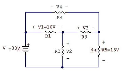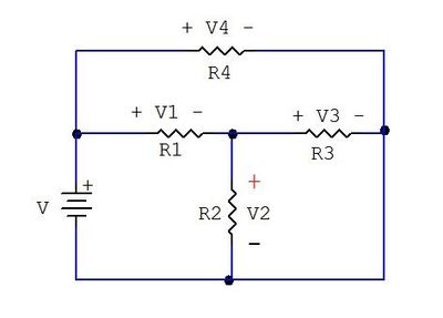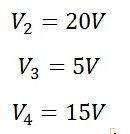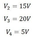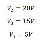 Teniendo en cuenta los valores de los voltajes de la siguiente figura, se puede concluir que los voltajes en R2, R3 y R4 son: