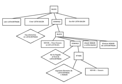 Ordena los elementos de la Lista de Entrada y los añade a la Lista de Salida que posteriormente muestra. Este mecanismo de ordenación obtiene en cada instante el menor de la lista de entrada, y lo mueve a la lista de salida, quedando los elementos de la lista de salida ordenados