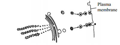 La imagen muestra macromoléculas siendo transportadas al exterior de la célula. ¿Cómo se llama este proceso?