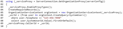 In a Microsoft Dynamics CRM environment, you have the following code segment. Line numbers included for reference only.