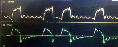 ¿Por qué en estas curvas del monitor del ventilador las curvas presentan un patrón en "dientes de sierra"?