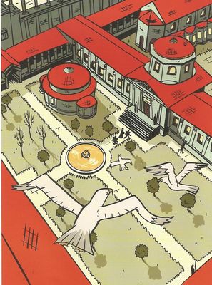 Que ángulo se utiliza nesta viñeta de Tirante el Blanco ilustrada por Miguel Porto , editorial SM