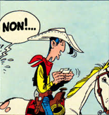 Nesta viñeta de Lucky Luke o rabiño do globo que nos indica.