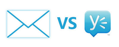 Yammer permite realizar comunicaciones privadas generalmente de 1 a 1 o de 1 a varios, se puede interactuar con personas fuera de la sociedad, generan intercambios de información "temporales" (no necesitan presencia de la información) y difícilmente pueden tener continuidad mientras que el correo electrónico permite ejecutar COMUNICACIONES PUBLICAS buscando conversar, colaborar y compartir.