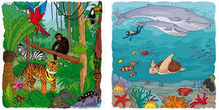 La siguiente imagen muestra un ecosistema terrestre y un ecosistema acuático.