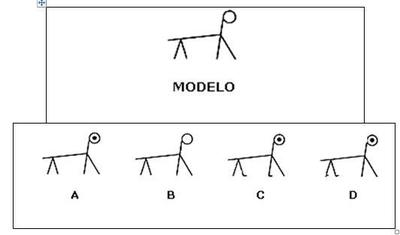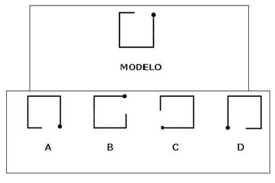 A la derecha de la figura modelo, hay 4 parecidas, solo una es igual al modelo. ¿Cuál?