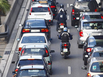 Si circula con su motocicleta por una vía saturada, ¿le está permitido zigzaguear entre los vehículos?