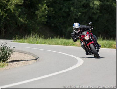 Inclinar la motocicleta en la dirección de la curva o vuelta