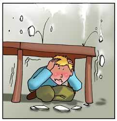 ubicarte debajo de la silla o una columna y después ir hacia una salida de emergencia