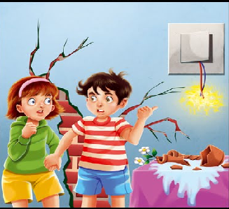 El niño advierte a la niña sobre el cable eléctrico dañado