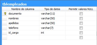 select into tblempleados (documento,nombres,apellidos,telefono,cargo) values ('123','Yoyito','Perez','8280015','1')