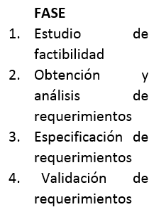 En el proceso de ingeniería de requerimientos se tiene 4 fases principales