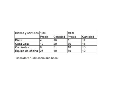 Deflactor del año 1989 = 85.44, Deflactor del año 1999 = 185.44