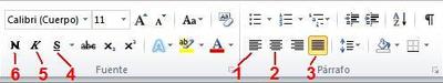 Selecciona las 3 opciones que nos permiten crear un titulo centrado, con fuente negrita y subrayado.