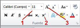 De la imagen mostrada, selecciona la opción que nos sirve para aumentar el tamaño del texto solo clics, y el texto aumentara de tamaño de un punto en un punto. Un clic es igual a un punto.