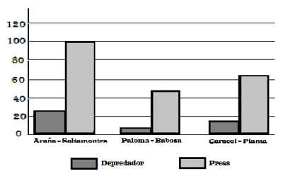 En el gráfico se muestra el número de depredadores y presas que vieron.