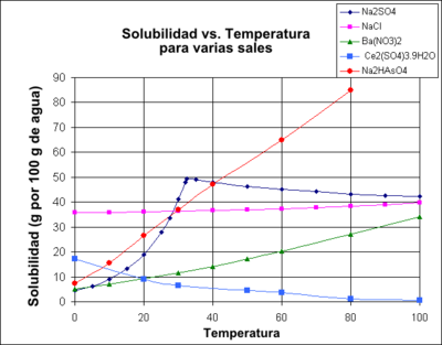 Aquí se muestran las solubilidades de varias sales en agua. A sesenta grados celcius, cuál de las siguientes sales puede formar una disolución saturada