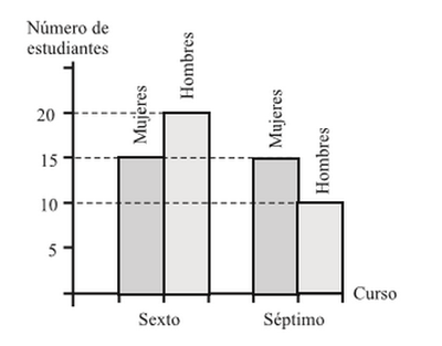 La gráfica muestra el número de estudiantes por sexo que hay en cada uno de los cursos sexto y séptimo de un colegio. Del total de estudiantes de sexto y séptimo es cierto que