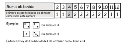 Para una tarea del colegio, Camilo necesita hallar la probabilidad de cada suma que se obtiene cuando se lanzan 2 dados; para ello realizó la siguiente tabla:
