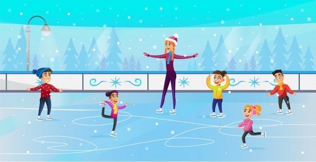 Kids Doing Figure Skating Ice Rink Park Flat 82574 11088 (image/jpeg)