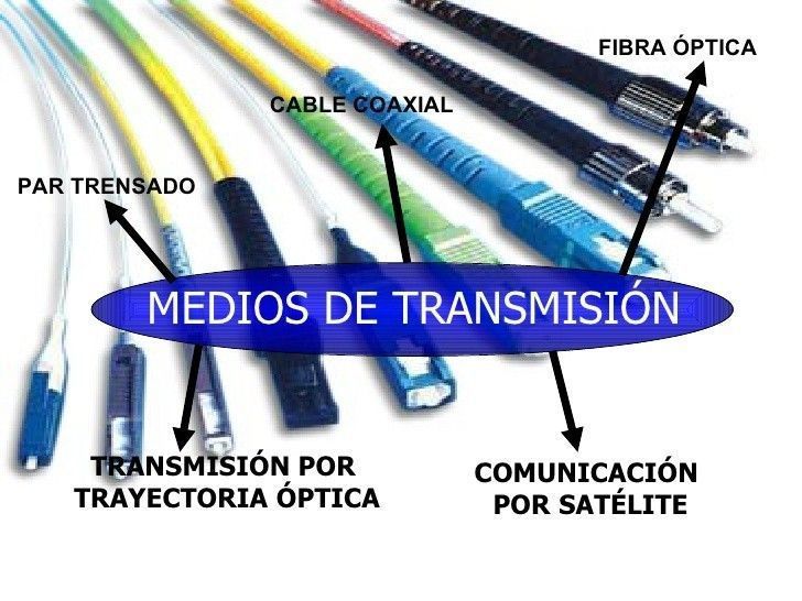 Los cables metálicos o de cobre (Coaxiales) junto con los cables de pares trenzados y la fibra óptica (Multimodo o Monomodo; Para bajas o altas velocidades)