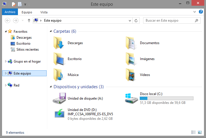 Indica el nombre de cada elemento del explorador de archivos de Windows 8.1