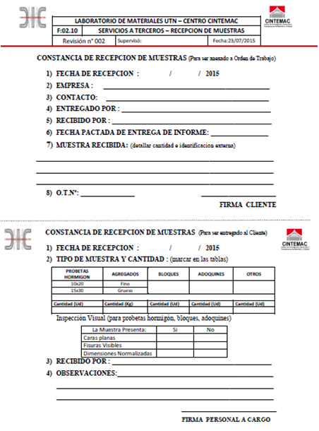De la Ficha de Procesos de Ensayos a Terceros, marcar las respuestas que corresponden a Entradas del Proceso.