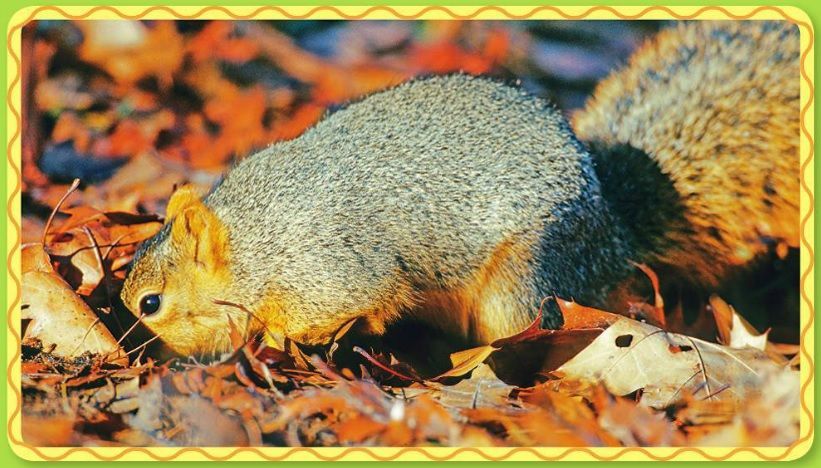 Squirrels hunt and find [blank_start]nuts[blank_end] that lie on the gound.