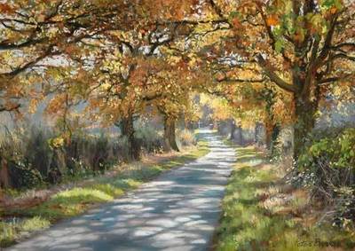 The path is [blank_start]dappled in[blank_end] (marked with spots) shadow.