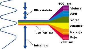 La luz visible o blanca la foman varias longitudes de onda o colores