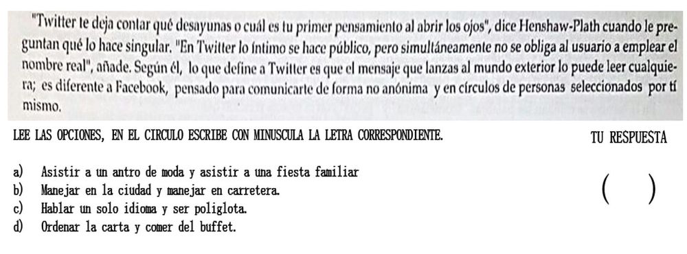 Lee el siguiente texto y elige la respuesta correcta para cada pregunta.