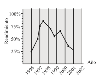 El siguiente diagrama muestra el rendimiento de un ciclista en los últimos años en la vuelta a España en bicicleta.