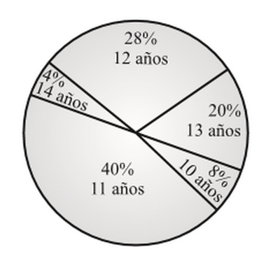 En el diagrama circular se presenta la información de los porcentajes de un grupo de 50 estudiantes de séptimo grado, cuando se les preguntó por sus edades. ¿Cuántos estudiantes tienen 12 años?
