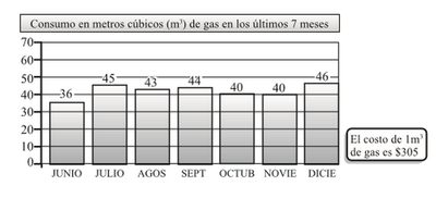 El promedio de consumo de gas de la familia Carvajal en los últimos 7 meses fue: